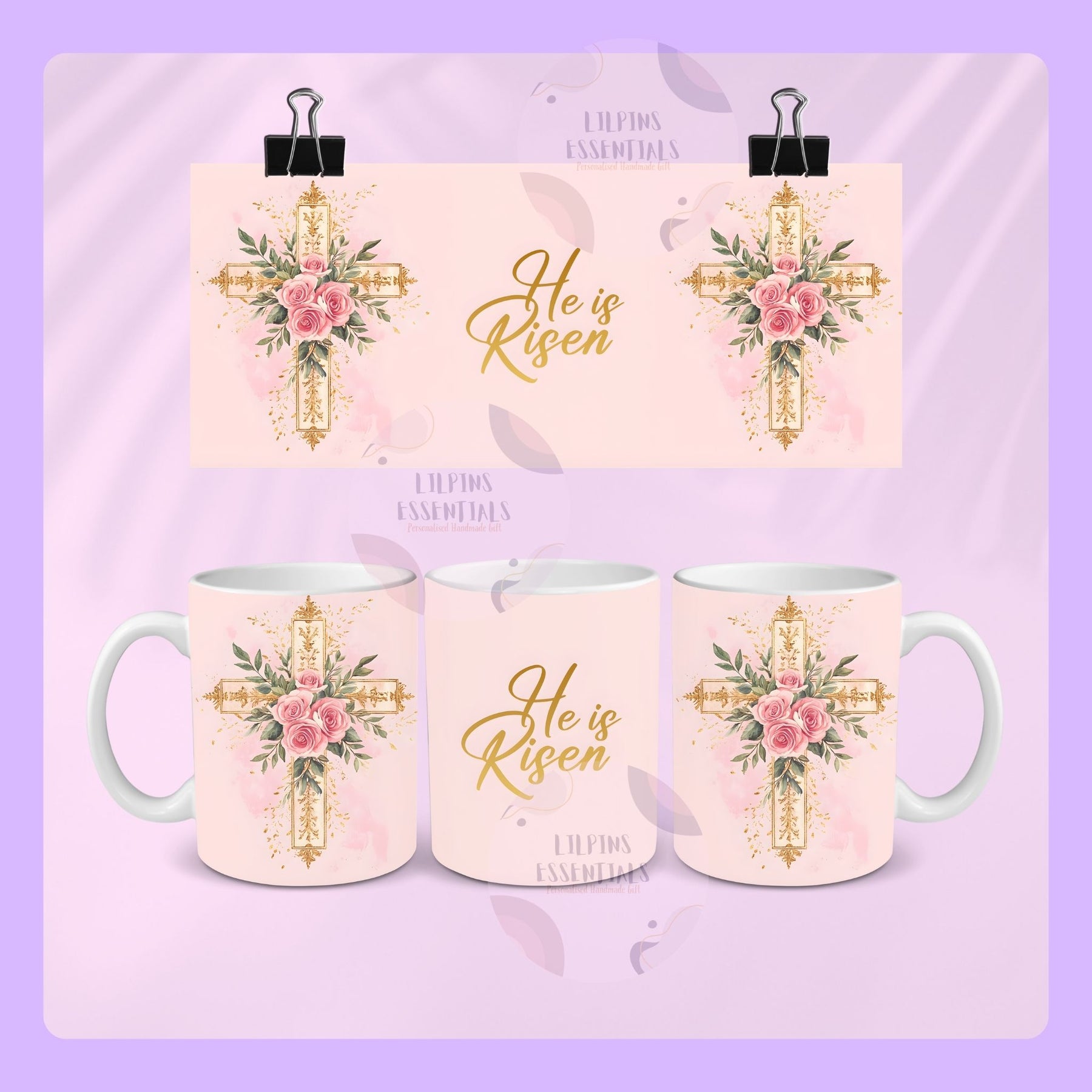 Celebrate the message of Easter with this elegant He Is Risen Easter Mug featuring a beautiful floral cross design. This Christian cross coffee mug is a meaningful way to start the day with faith and reflection. Perfect for Easter celebrations, church gatherings or thoughtful Christian gifts, this mug combines inspirational design with everyday practicality.